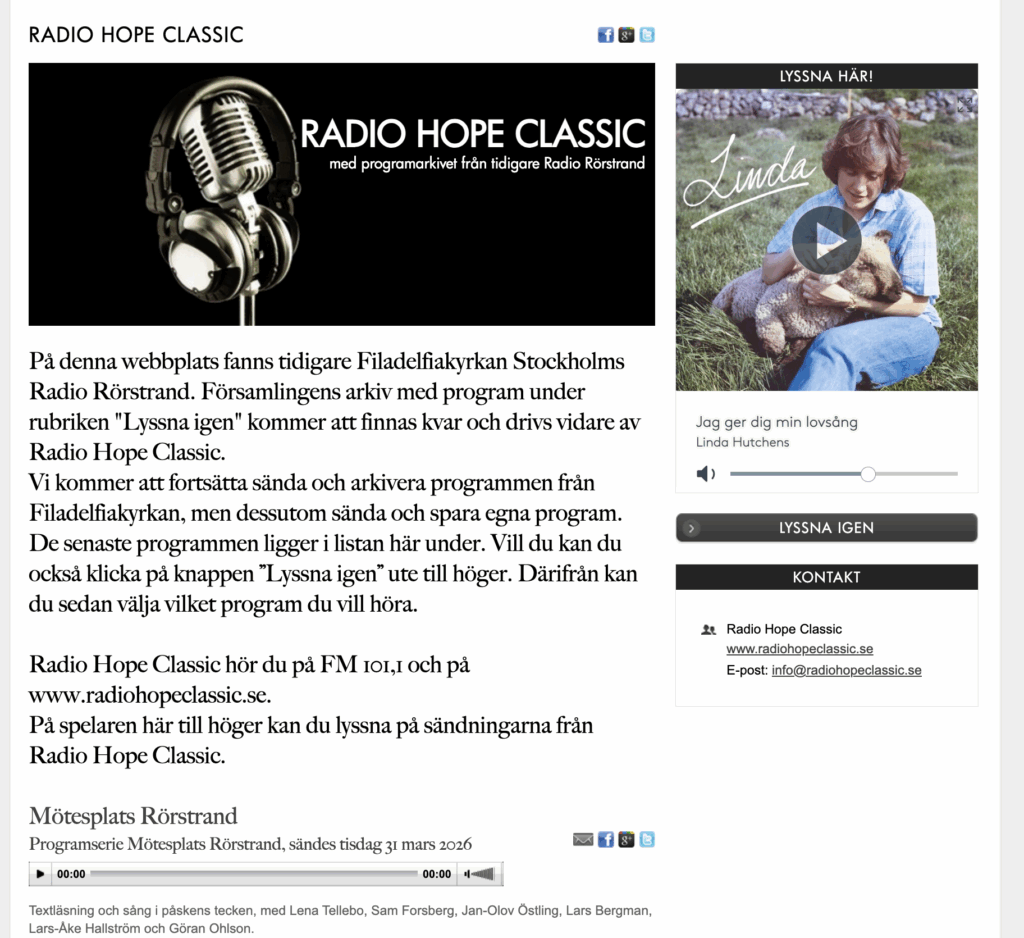 HÄR är länken till Lyssna igen på Radio Hope Classic med programmen i tidsordning.